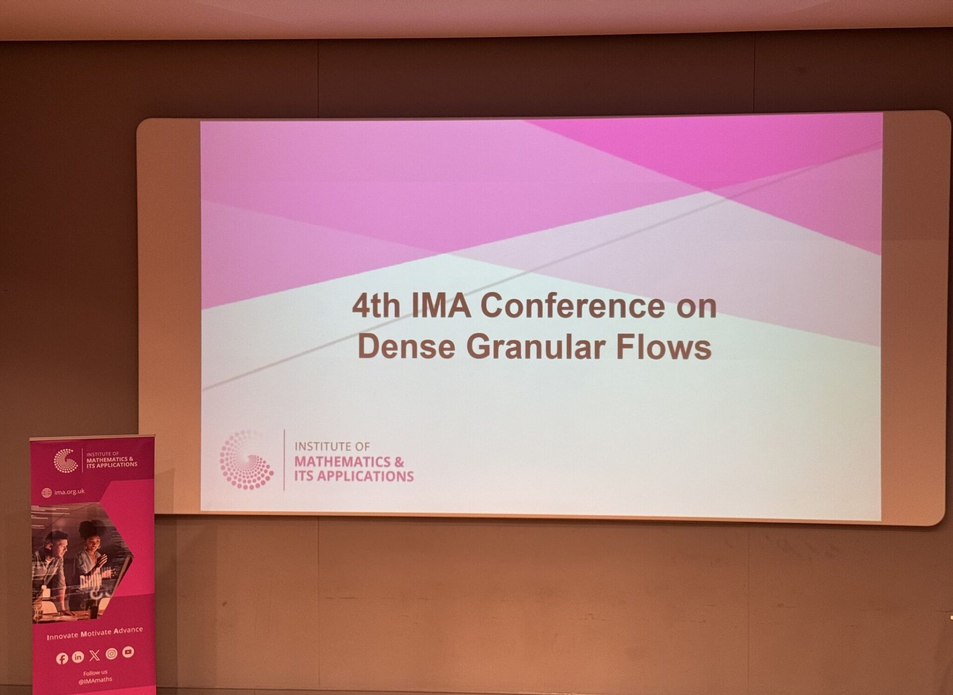 Our Aadi (DC07) presented part of his work at the 4th IMA Conference on Dense Granular Flows in Cambridge (UK) on 28-6-2025.